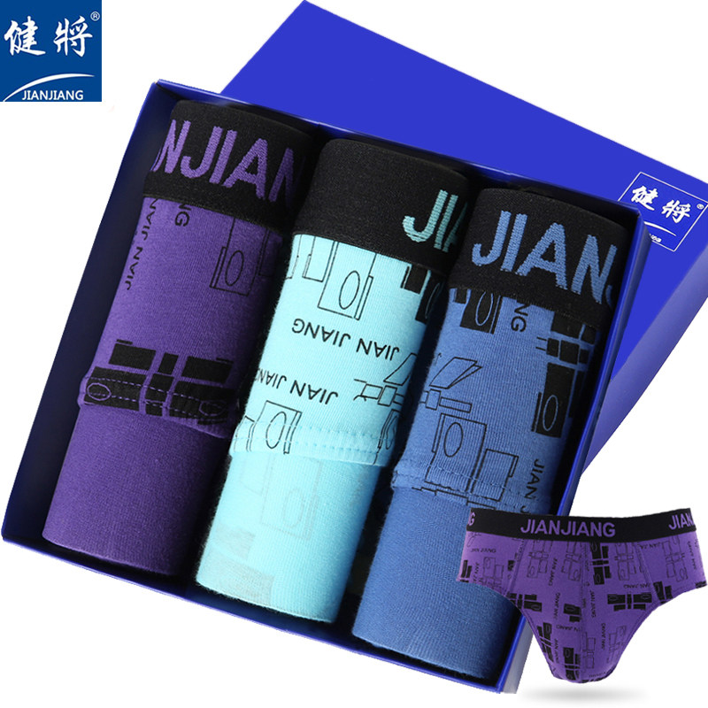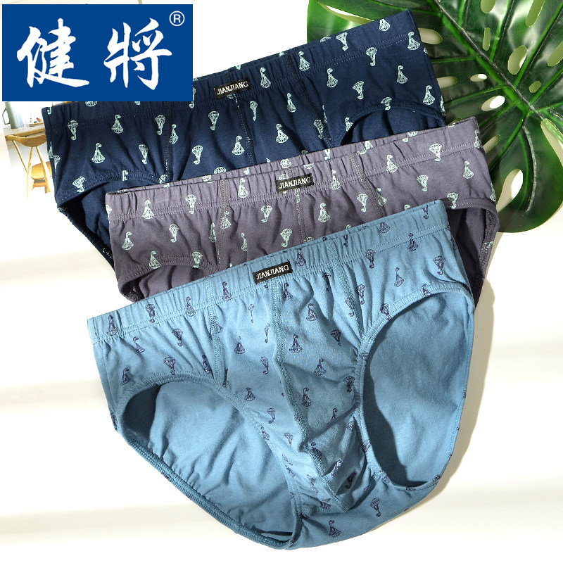 正品健将100%纯棉男士三角中腰短裤花色全棉爸爸内裤青年棉质裤头