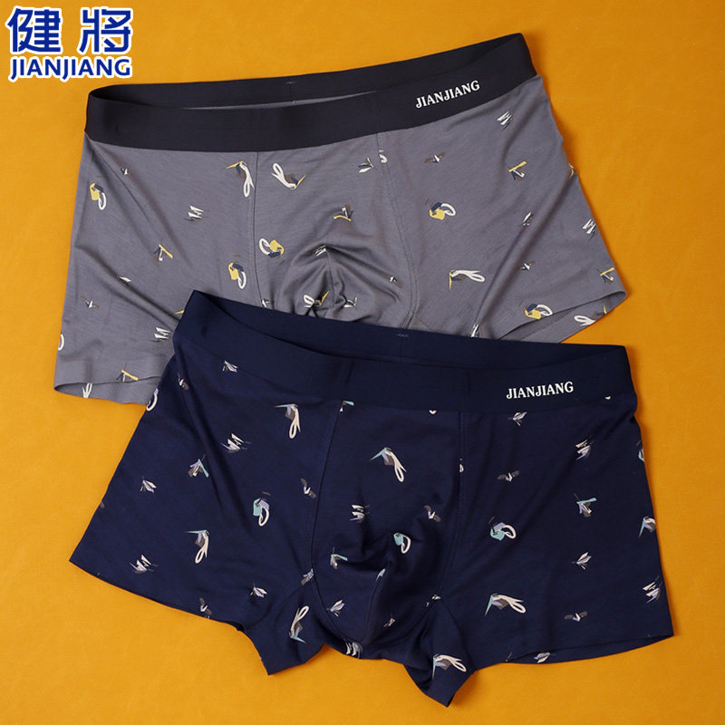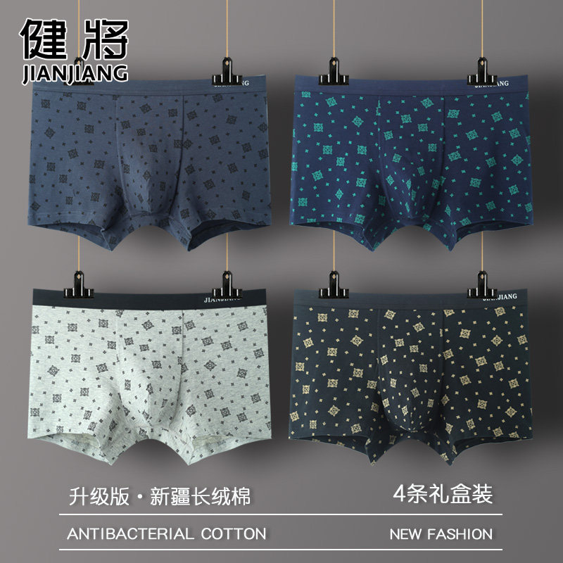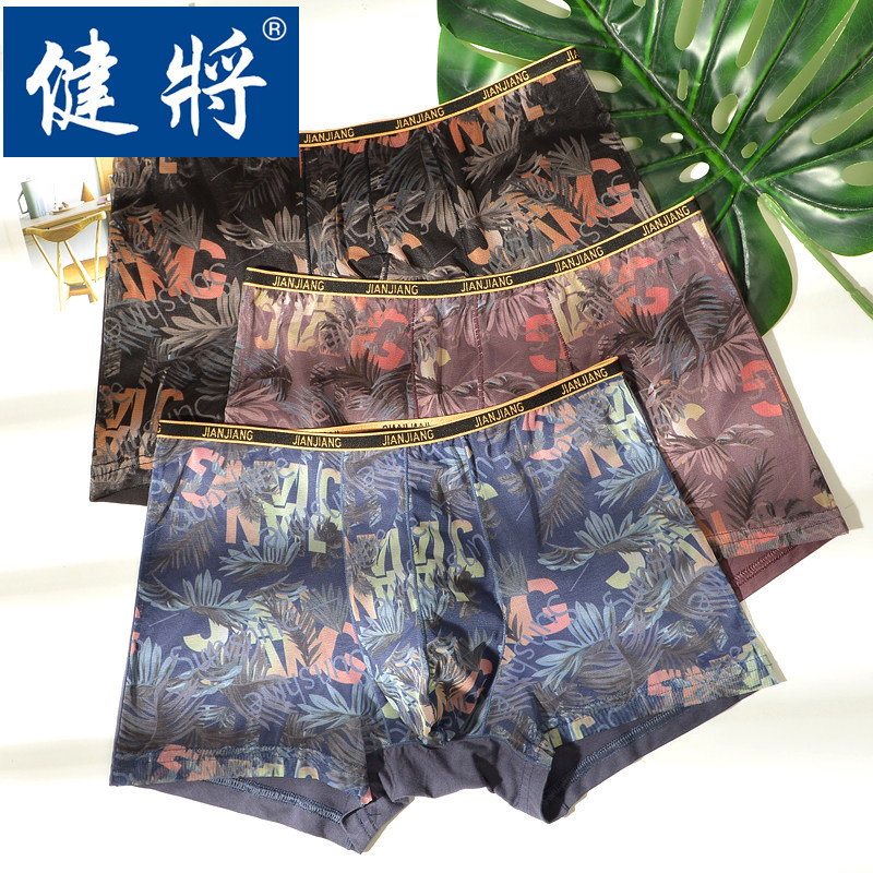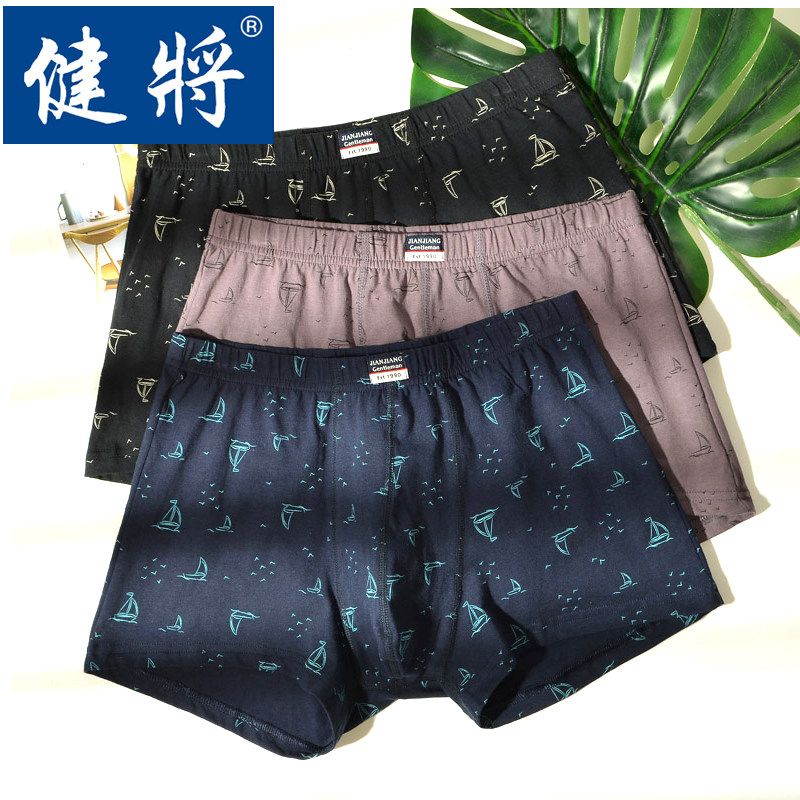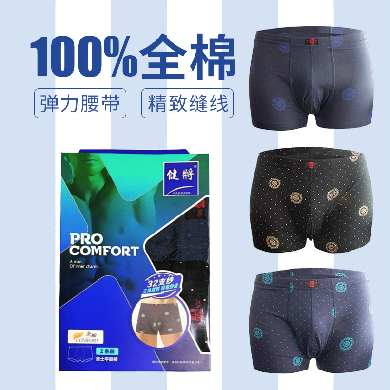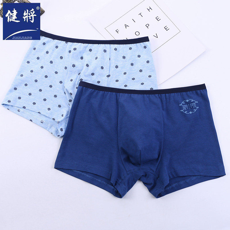 正品健将100%全棉男内裤青年纯棉印花短裤爸爸四角棉质平角裤
