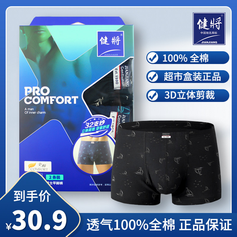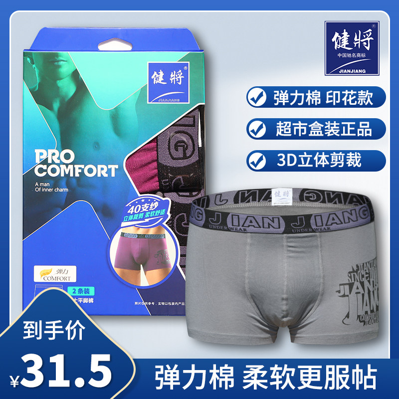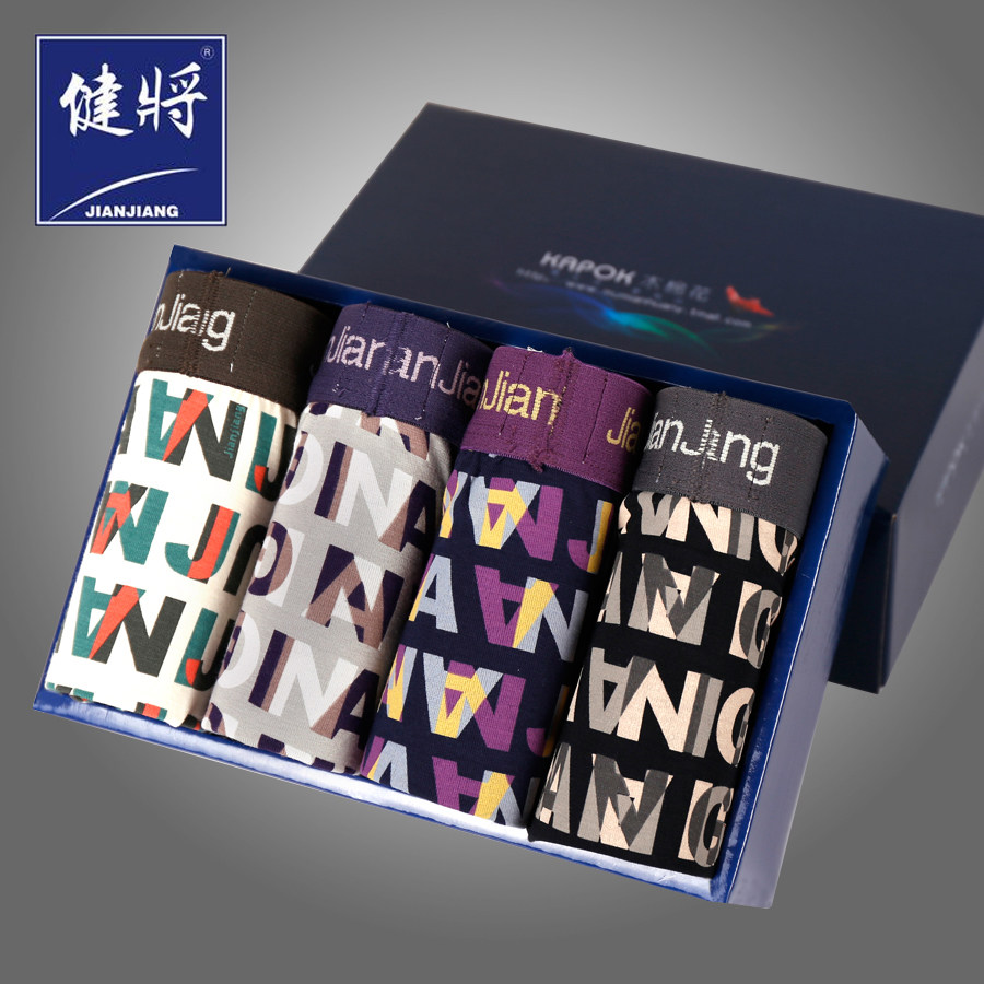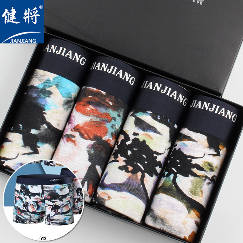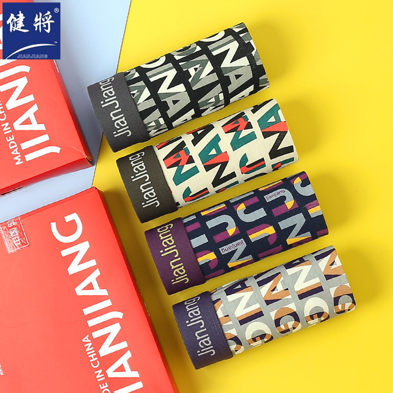 正品健将100%全棉男内裤青年纯棉印花短裤爸爸四角棉质平角裤