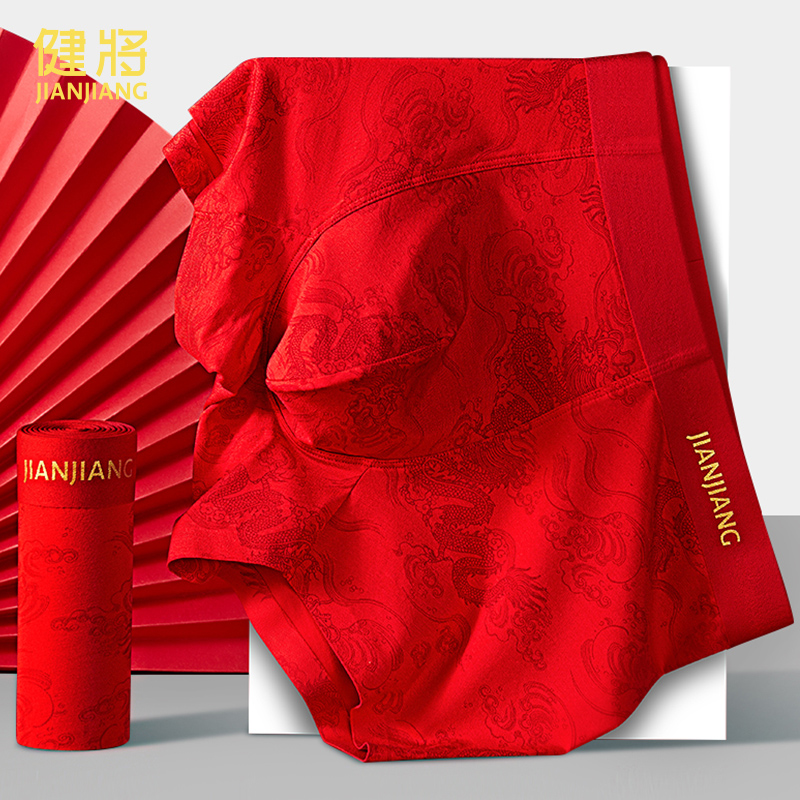 健将男士内裤莫代尔本命年男款大红色龙年纯棉平角裤结婚四角短裤