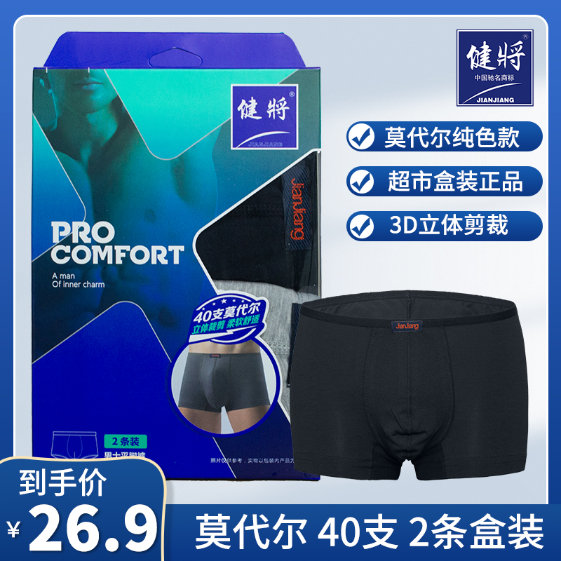 2盒装健将90J66男士中腰内裤莫代尔平角裤男式短裤透气舒适四角裤