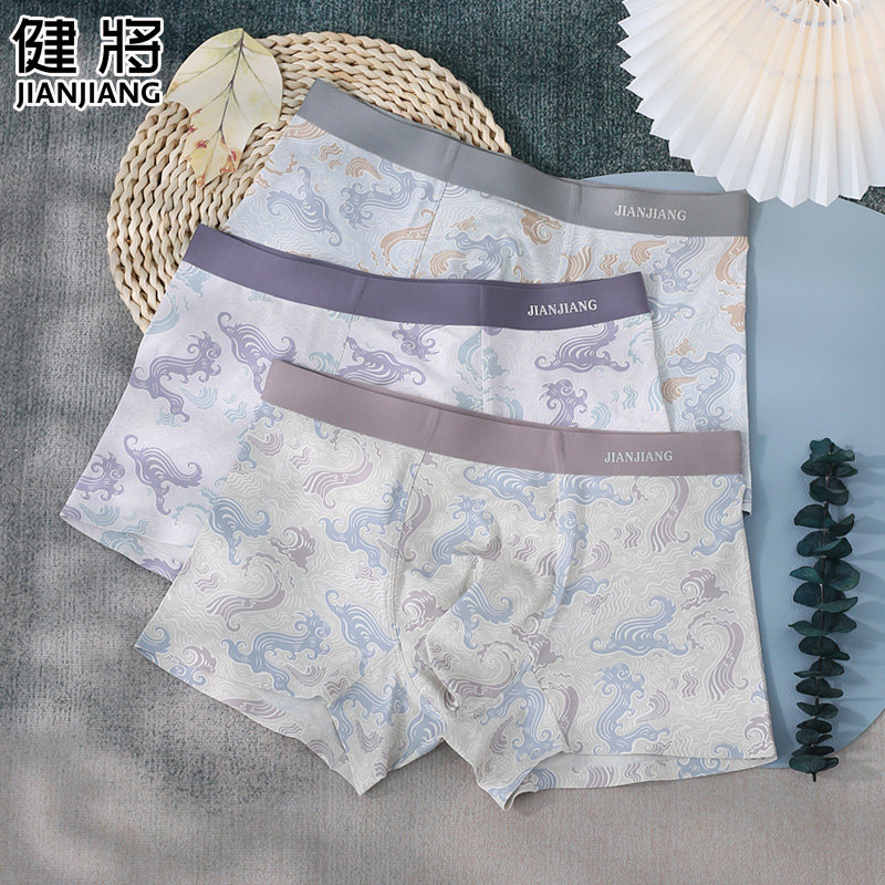 新款健将男士平角内裤莫代尔印花无痕弹性青年时尚潮款四角短裤头