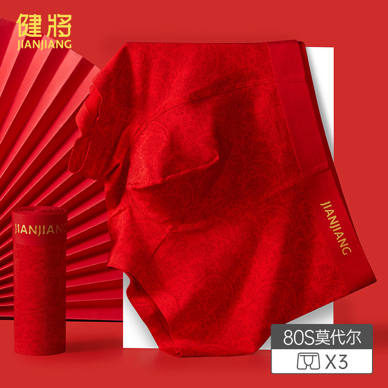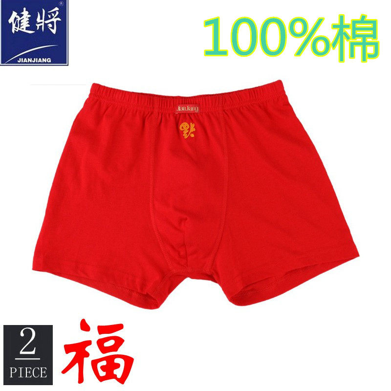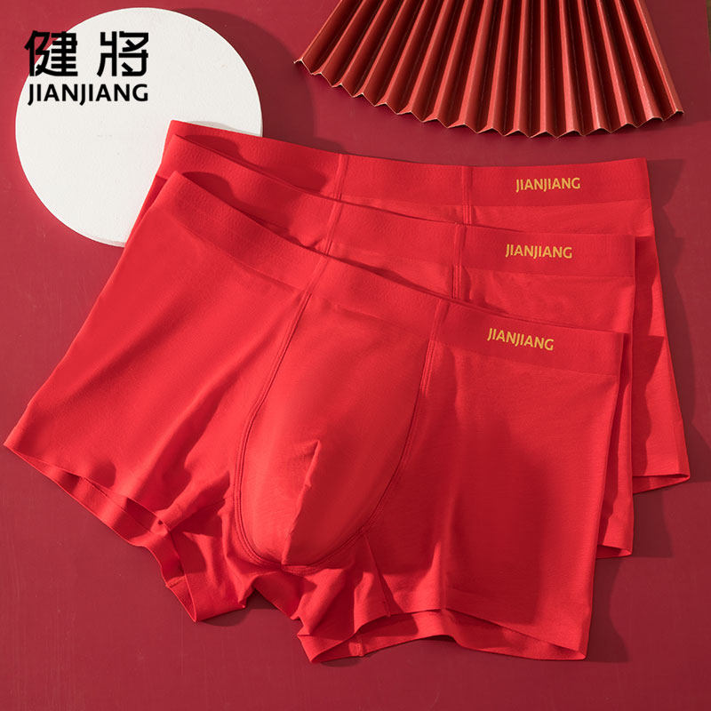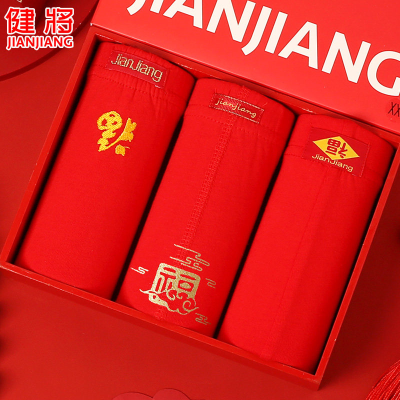 健将内裤男士100%全棉本命年大红色结婚短裤纯棉平角裤龙年四角裤