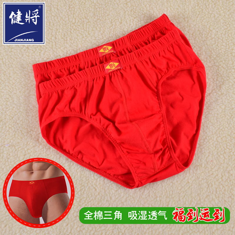 正品健将男士本命年100%全棉三角内裤爸爸纯棉大红中腰青年短裤头