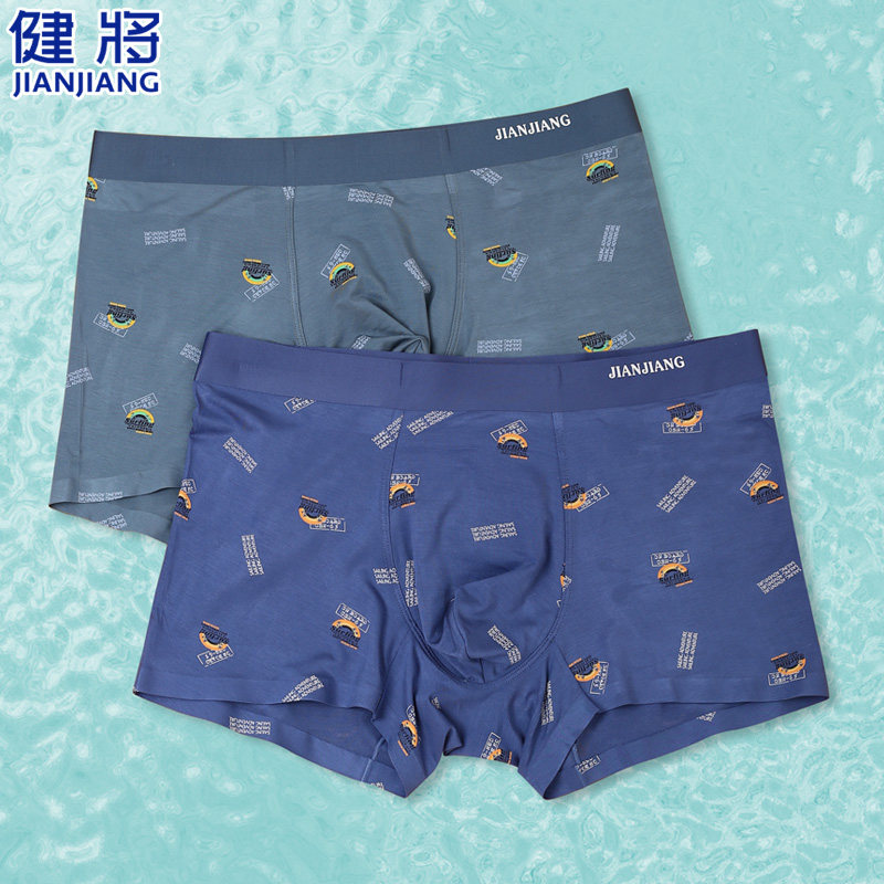 2条健将男士内裤夏季薄莫代尔冰丝印花平角裤无痕短裤青年四角裤