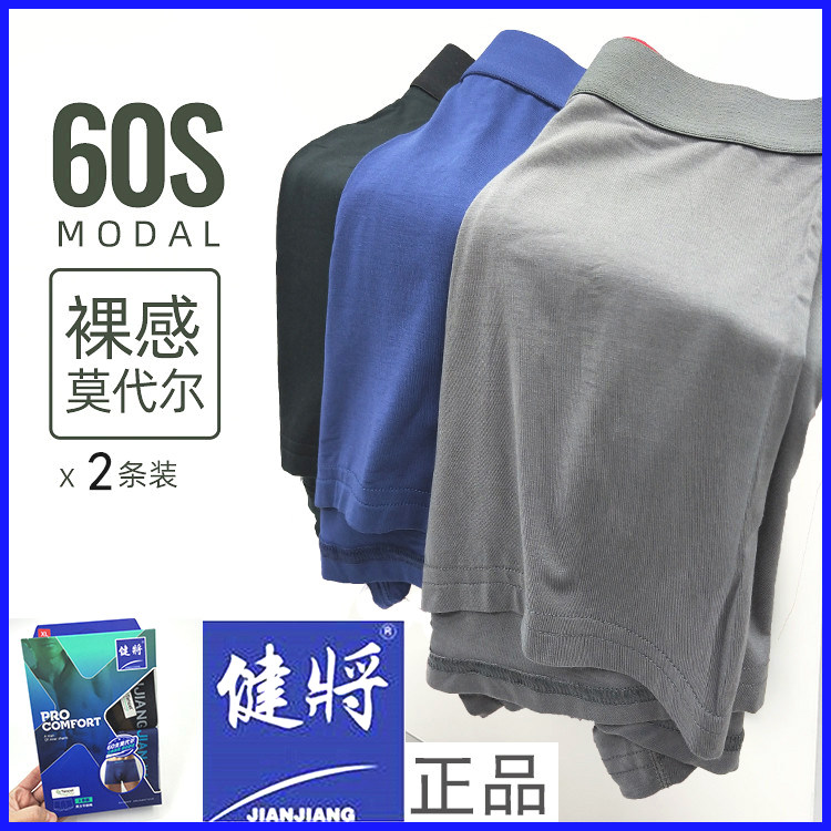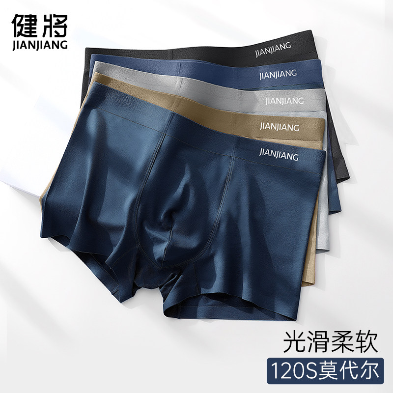 健将120S莫代尔内裤男式纯棉裆四角裤男生抗菌透气平角短裤头男士
