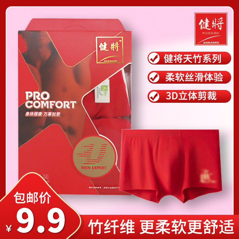 健将男士内裤本命年红色中腰莫代尔过年平角窄边透气盒装短裤9530