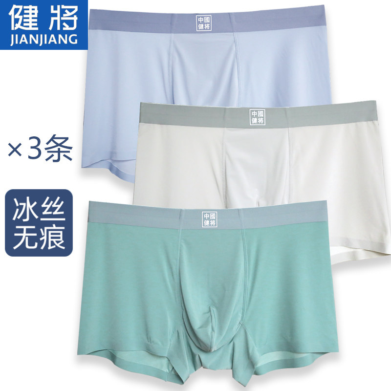 3条 健将男士内裤夏季薄款冰丝短裤抗菌裆四角裤青年无痕平角裤头
