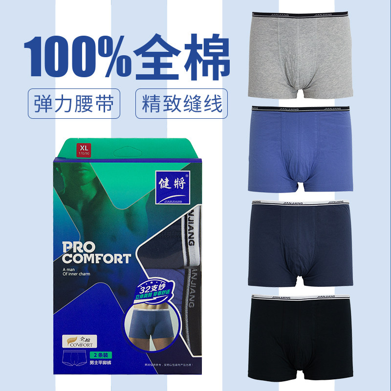 健将男士内裤男透气纯棉短裤100%全棉四角裤全裤抗菌大码平角裤头