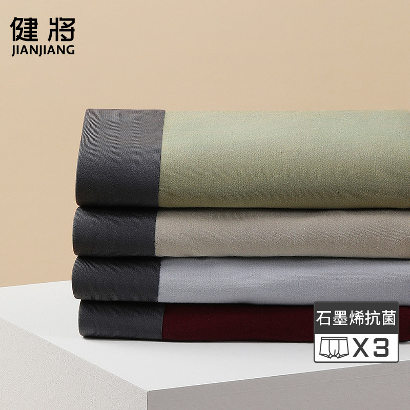 3条健将石墨烯男士内裤男平角裤衩抗菌透气四角裤短裤四角平角裤