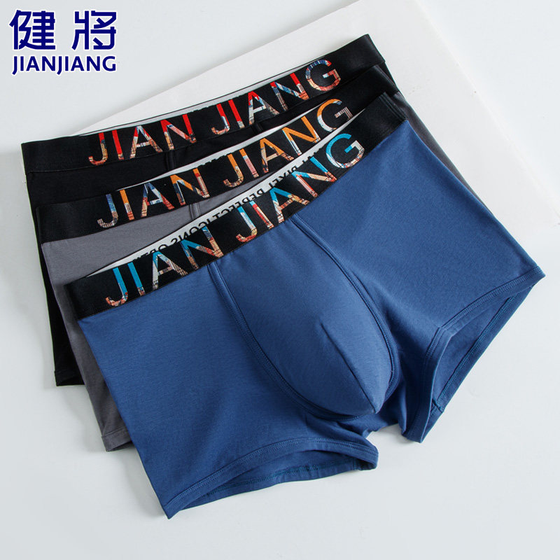 3条健将男士内裤平角裤字母图竹纤维潮男短裤四角裤礼盒