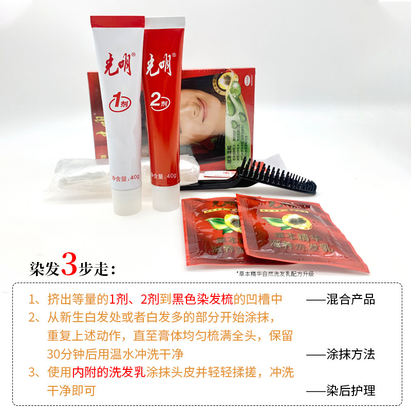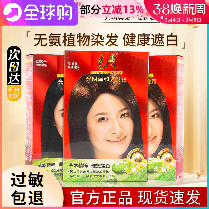 光明染发霜剂正品染发膏一洗黑不抗防过敏天然植物无刺激遮盖白发