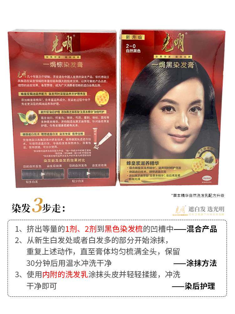光明染发剂无氨温和一洗黑膏霜褐棕焗黑盖白发官方抗防过敏正品
