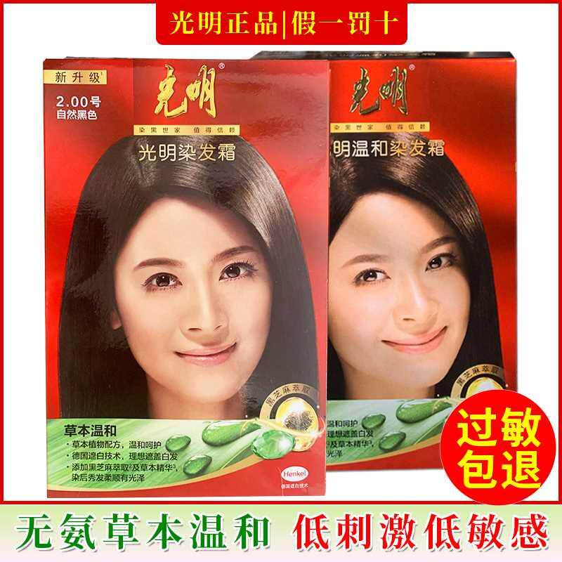 光明染发霜剂正品染发膏一洗黑不防过敏纯天然植物无刺激遮盖白发