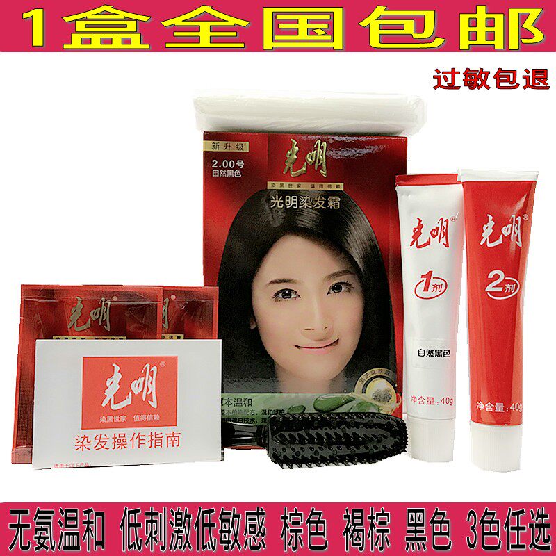 包邮光明染发剂不抗防过敏染发剂洗黑植物天然黑在家染发膏霜遮白