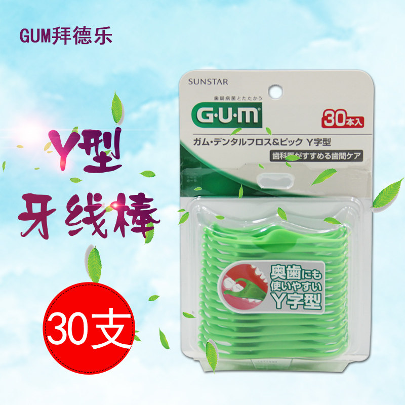 进口GUM全仕康Y字型牙线棒30根 耐久性减轻牙垢清洁护理清洁牙缝