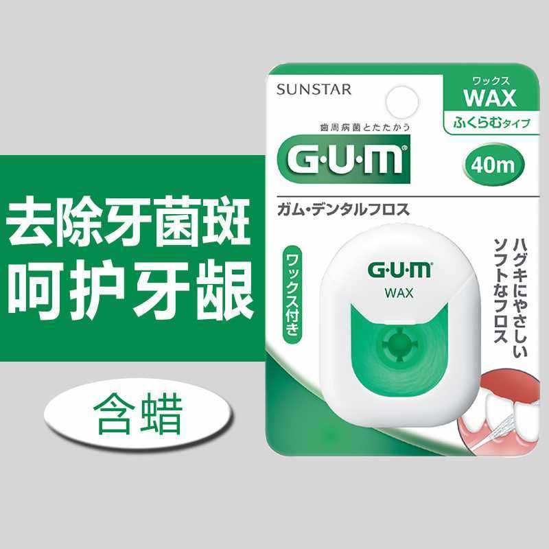 日本进口全仕康GUM拜德乐含蜡牙线40米细小牙缝残渣牙垢嘴臭美白