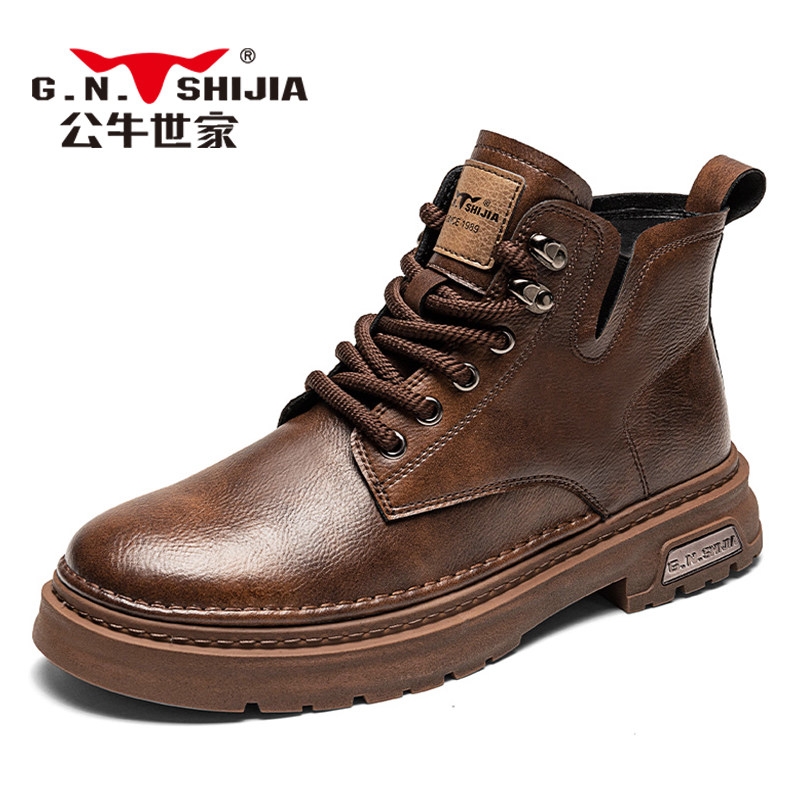公牛世家马丁靴男士秋冬英伦风工装加绒棉鞋高帮真皮复古大头皮鞋