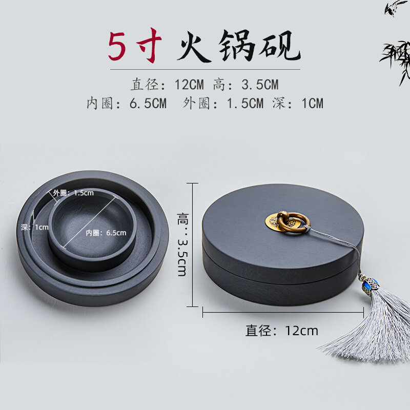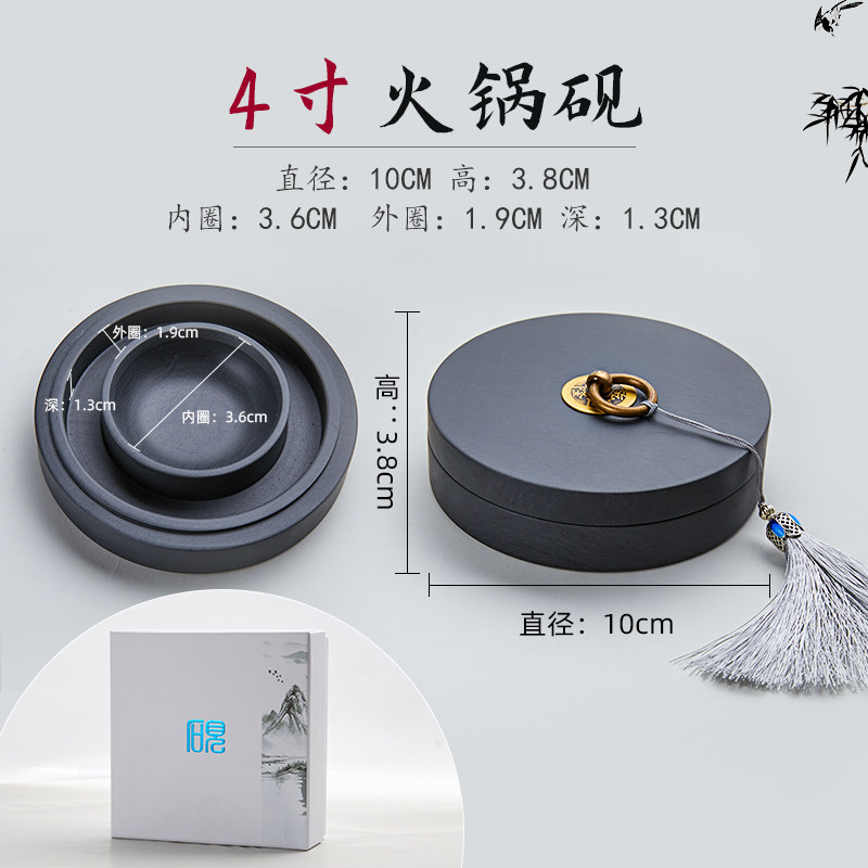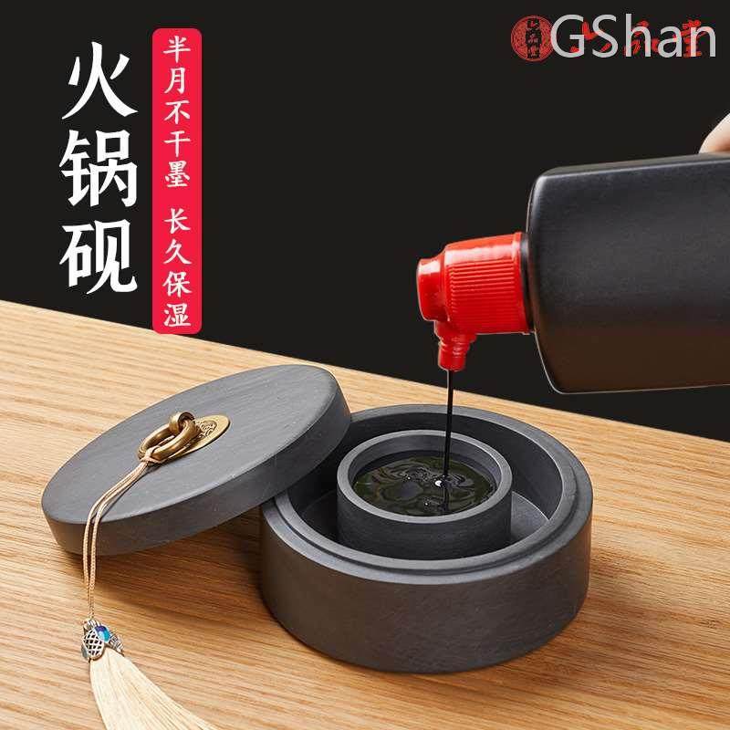 六品堂火锅砚台带盖书法专用多功能墨盒墨砚水碟原石天然石料石砚不干墨砚台毛笔墨水书法专用福禄砚台礼盒