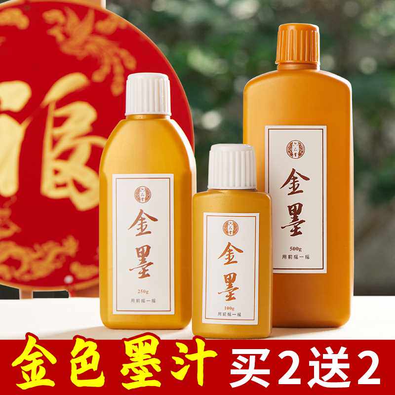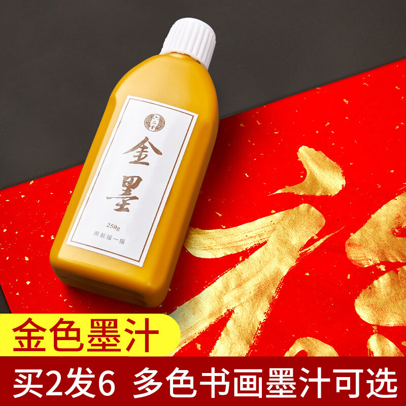 六品堂金色墨汁毛笔书法专用墨水大瓶国画练字写春联对联福字斗方