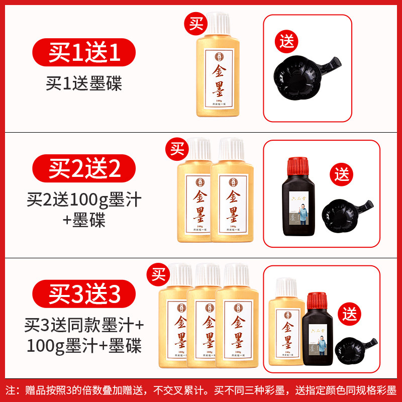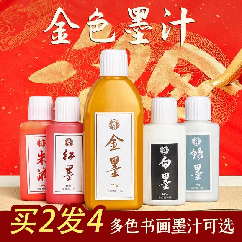 六品堂金色墨汁毛笔墨水学生用写对联纸书法专用快干白墨墨液红墨