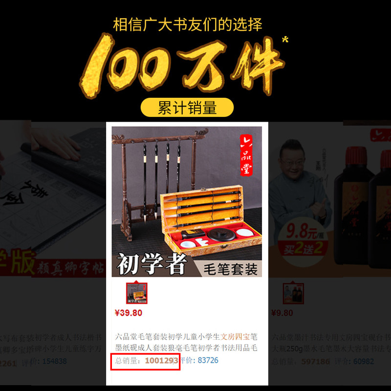 六品堂高浓墨汁书法精制专用毛墨水墨液大容量油烟墨文房四宝宣纸