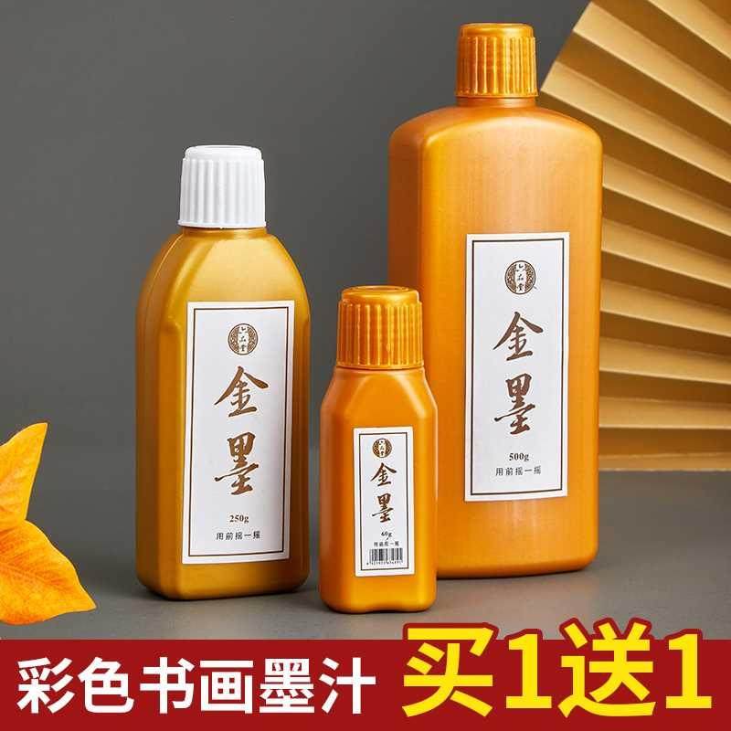六品堂金色墨汁写对联书法专用墨水大瓶初学者书画练字用毛笔用写