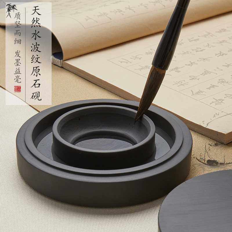 六品堂火锅砚台书法专用可磨墨墨盘带盖原石天然墨池文房四宝墨水