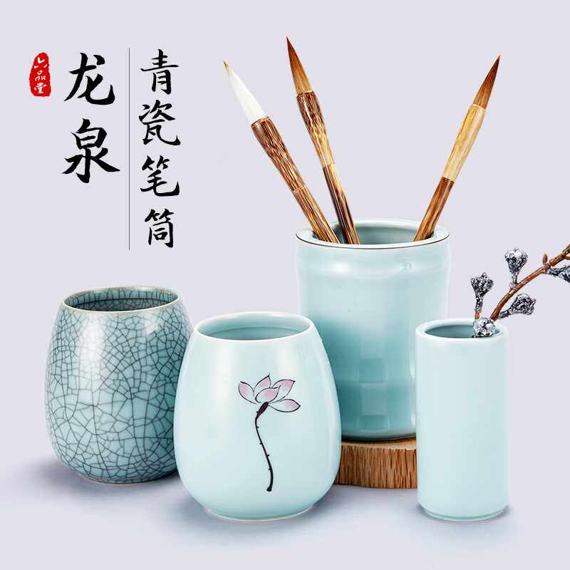 六品堂毛笔笔筒复古中国风陶瓷多功能笔筒学生桌面创意文具收纳盒