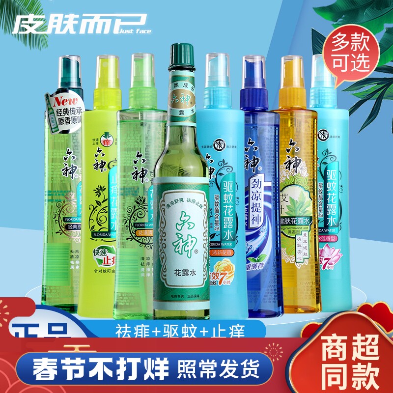 正品六神花露水祛痱止痒驱蚊喷雾经典款195ml香薰玻璃瓶儿童旗舰