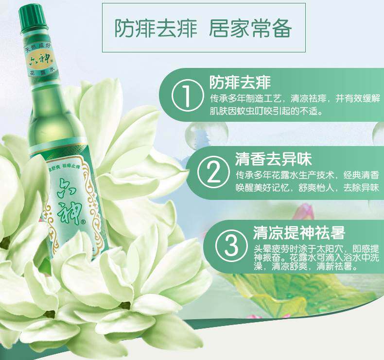 六神花露水经典款祛痱止痒喷雾宝防驱蚊宝官方旗舰店195ml玻璃瓶