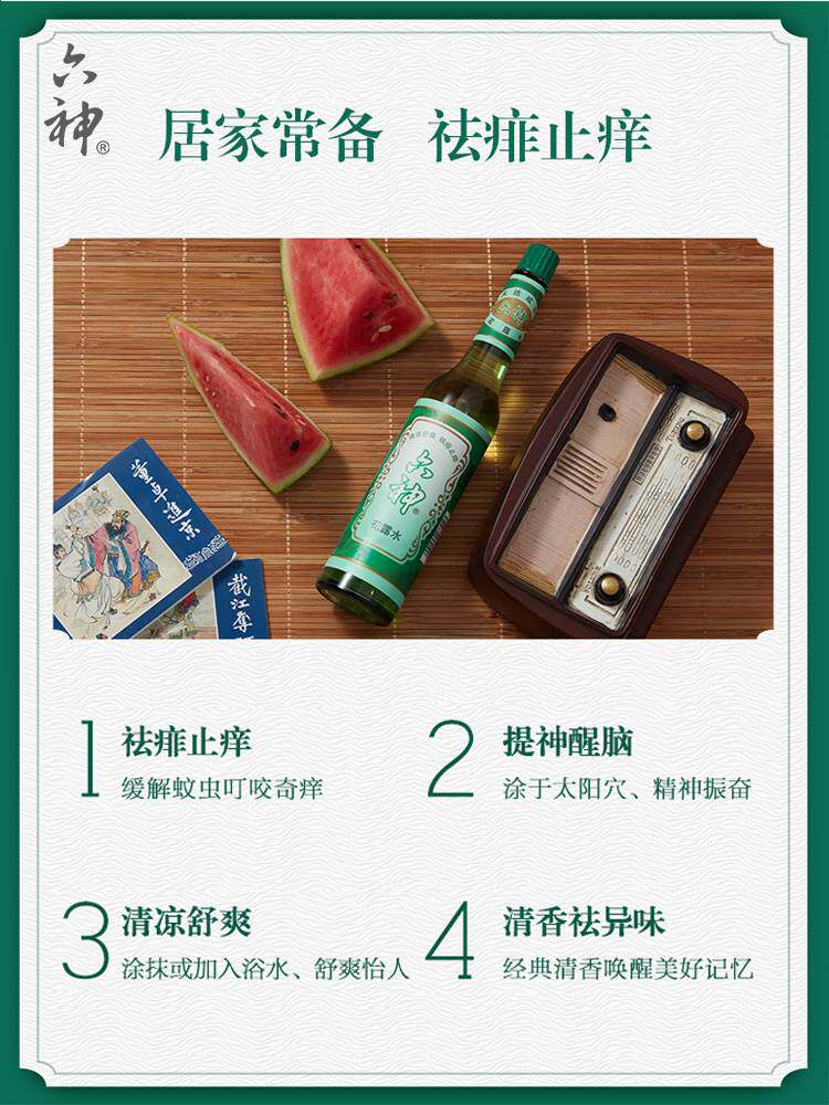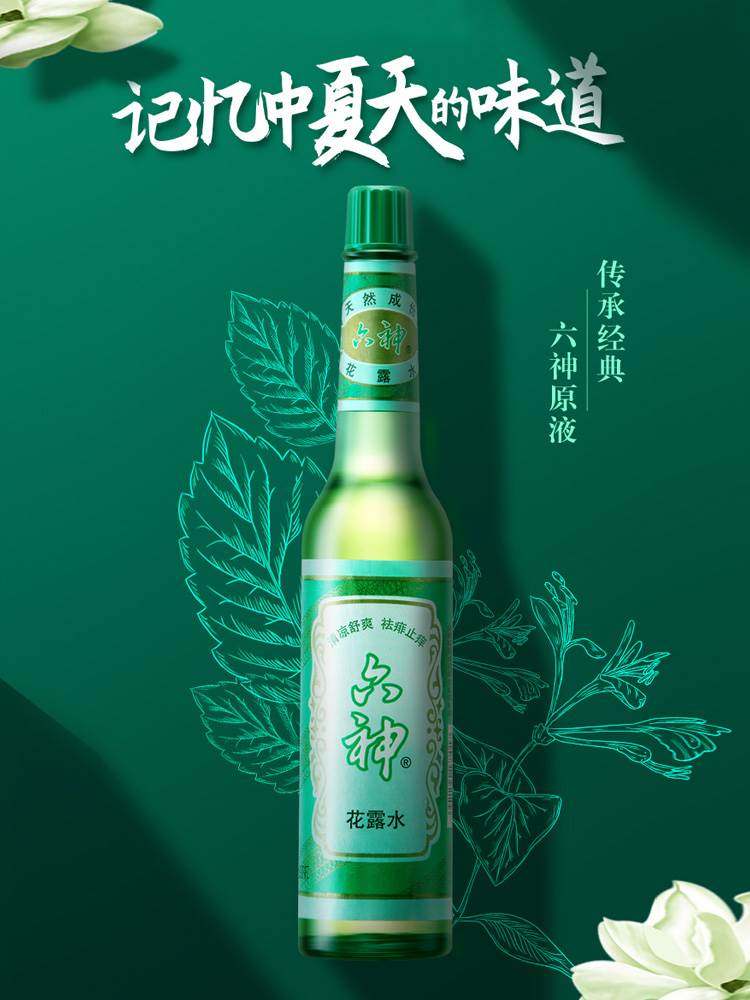 经典味道六神花露水195ml蚊不叮提神醒脑防痱祛痱玻璃瓶清凉舒爽