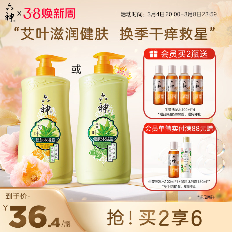 六神艾叶健肤沐浴露保湿滋润止痒艾叶精油沐浴乳持久留香1L