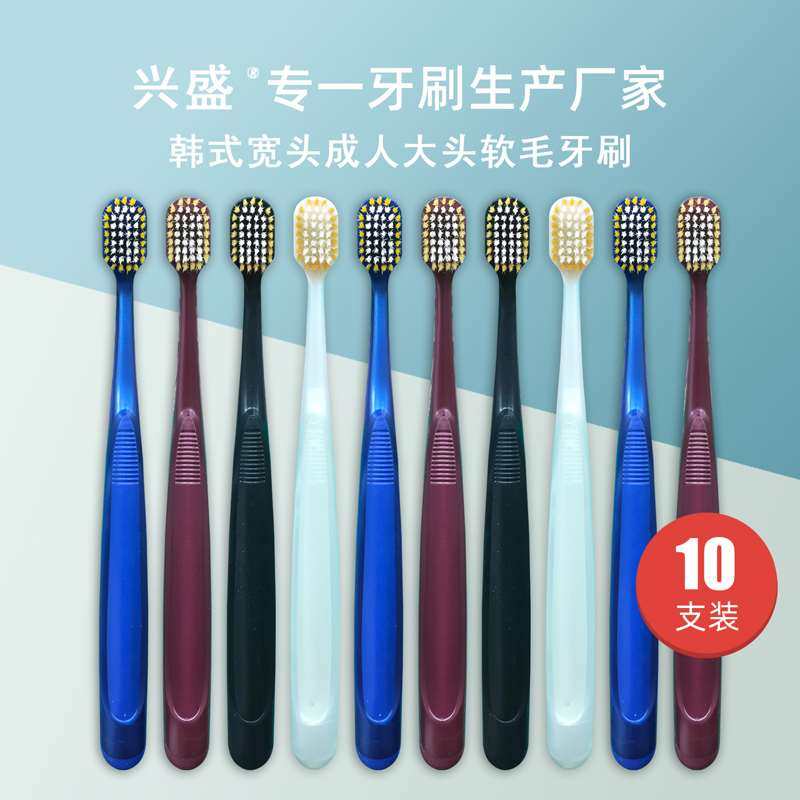 兴盛 48孔宽头 成人软毛牙刷 家用细毛 10支 套装情侣款