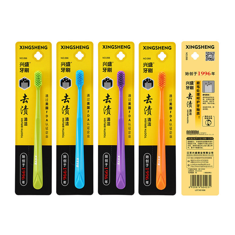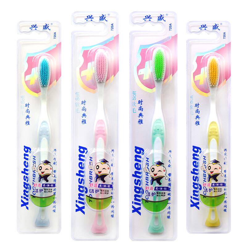 爆款软毛牙刷兴盛425A独立包装多色洁齿护龈柔弹刷毛成人家庭家用