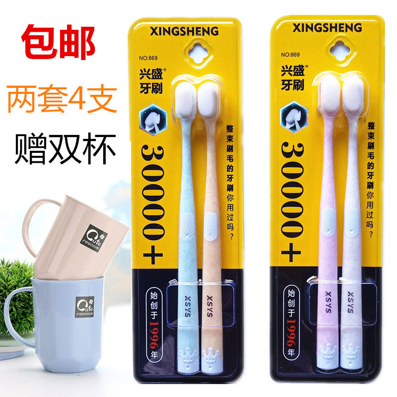 兴盛万根毛牙刷 整束柔丝 小头软毛牙刷 双支装 赠双杯 包邮