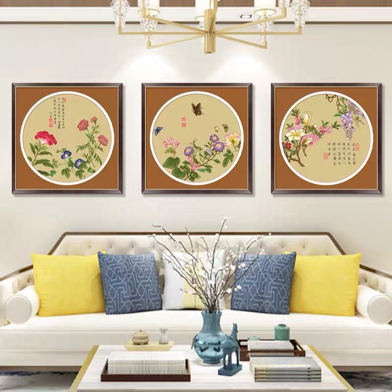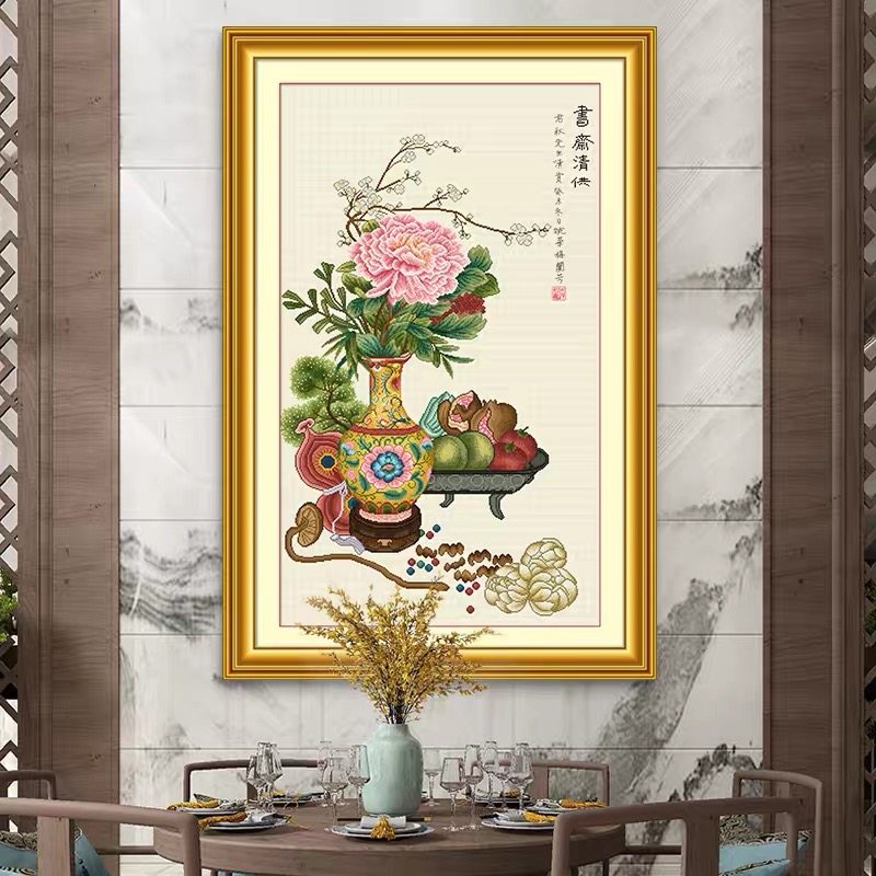 ks十字绣2023新款典雅大气现代中式客厅餐厅线绣花卉图自己绣小件