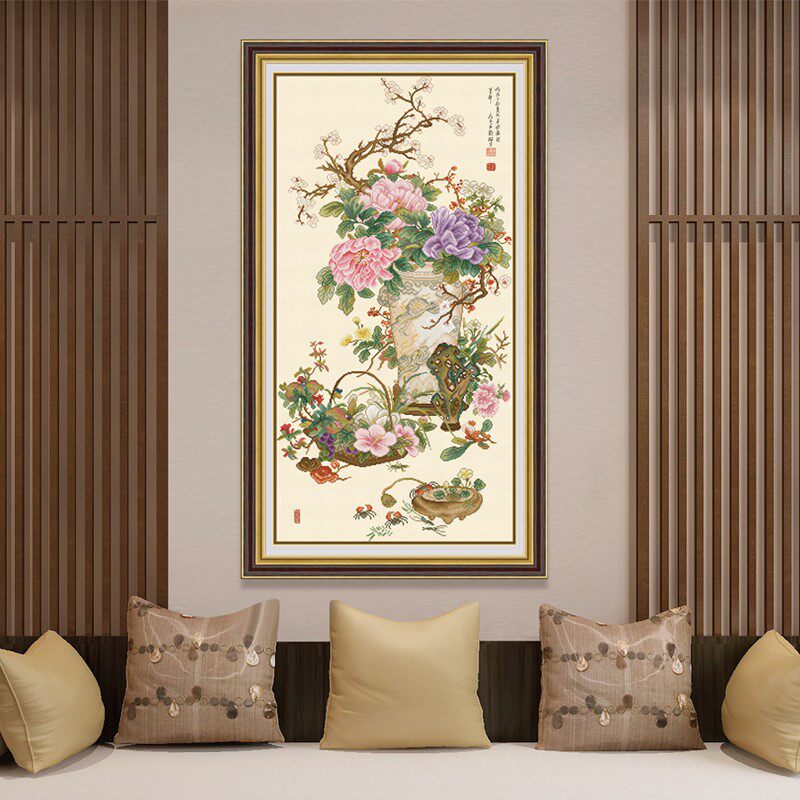 KS十字绣2023新款牡丹花典雅大气中式客厅线绣岁朝清供图 (二)