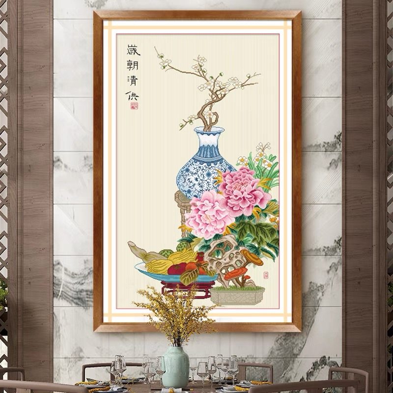 KS十字绣2023新款牡丹花典雅大气中式客厅自己绣线绣岁朝清供图