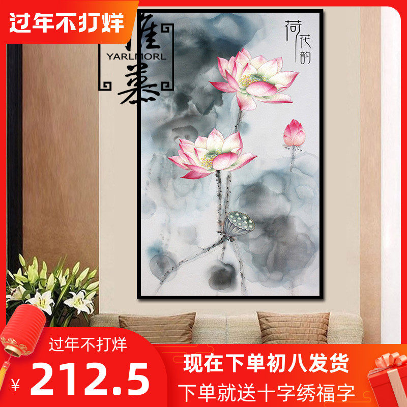新款印花正品DMC十字绣套件客厅玄关卧室竖版挂画典雅清新荷花韵