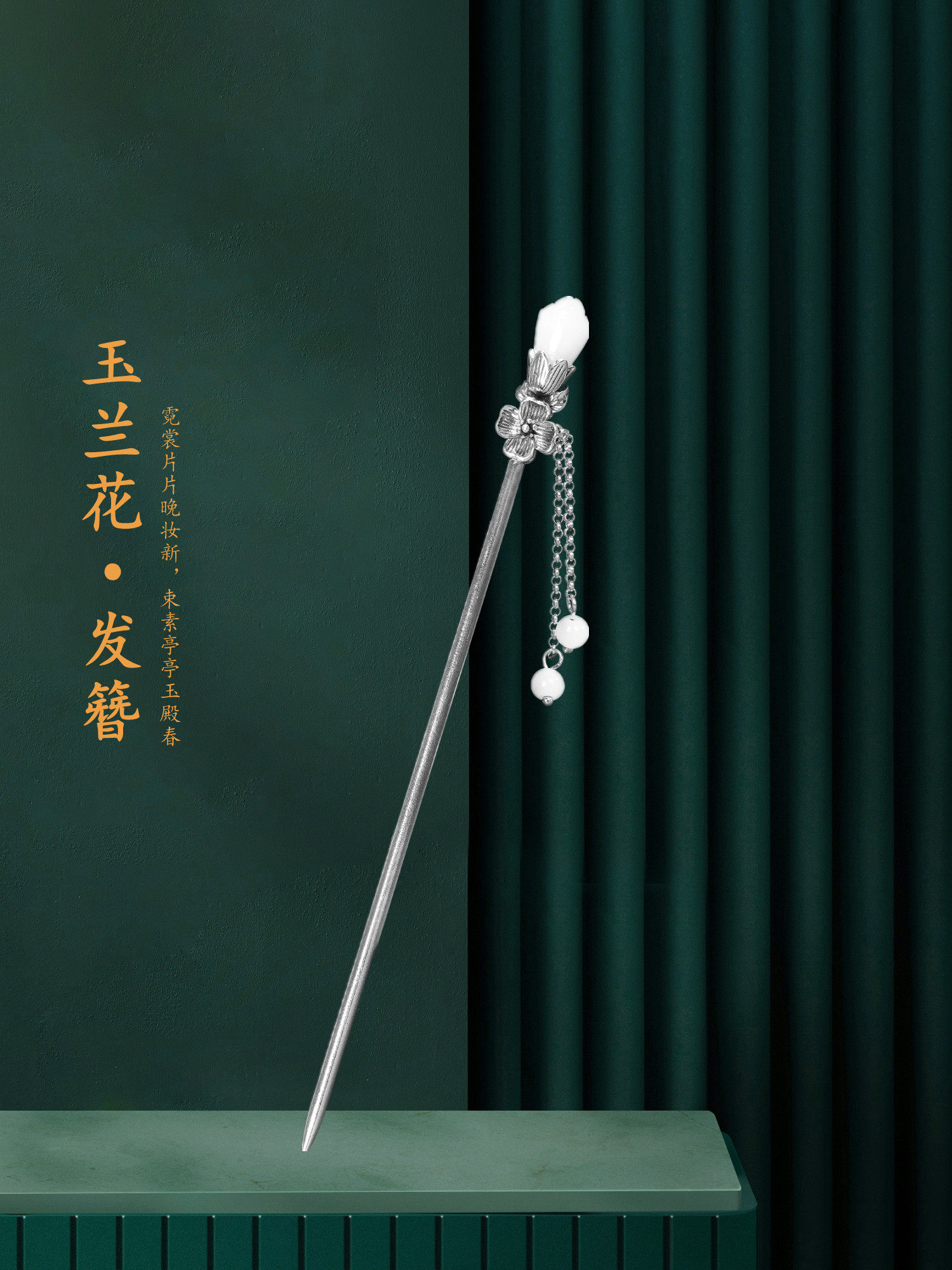 【玉兰花】s925银复古流苏女古风汉服步摇簪子笄礼新中式典雅发簪