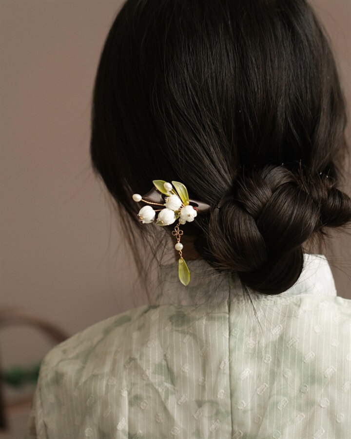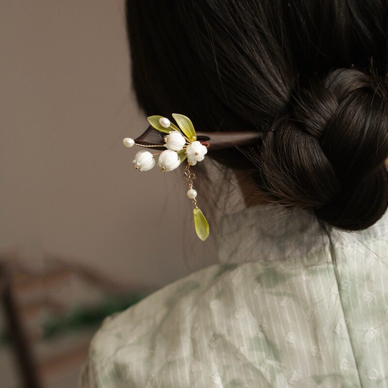 铃兰发簪~古风典雅盘发木簪清新花朵复古旗袍配饰流苏新中式发钗