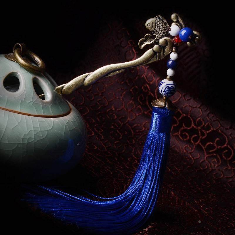 创意饰品发饰大气典雅民族风簪子地摊货源手工制作流苏蓝色盘发器