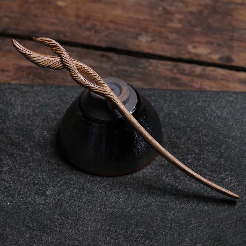 Zang又一雪 轻拿捏 绿檀黑檀木发簪盘发髻树叶子古朴传统典雅气质