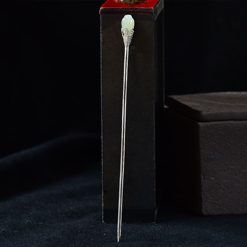 天然和田玉发簪女款气质典雅简约宫廷风汉服S925纯银发饰盘发发钗
