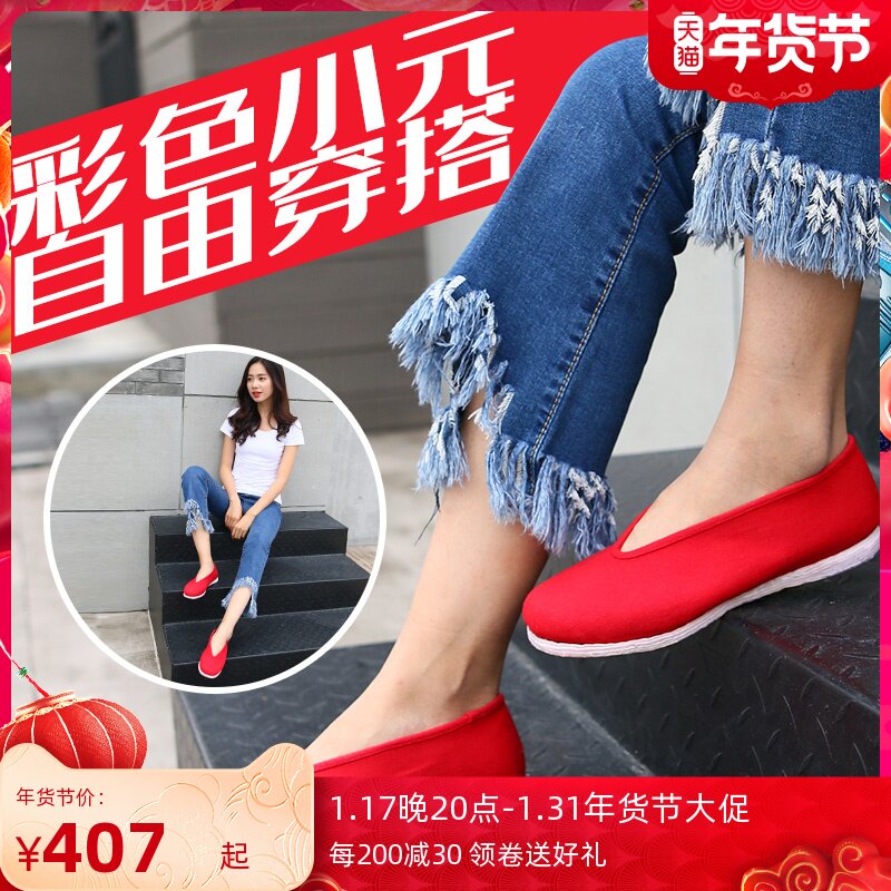 内联升女鞋手工千层底布鞋红色夹鞋僧鞋单鞋老北京布鞋春秋8280A