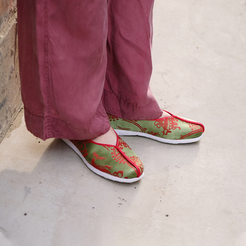 内联升女拖鞋千层底拼色真丝织锦手工北京布鞋家居休闲女鞋2036C