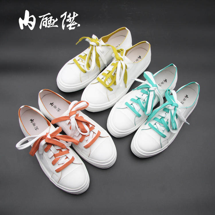 内联升女鞋春秋季时尚款板鞋低帮系带百搭时尚牛皮小白女鞋4151C