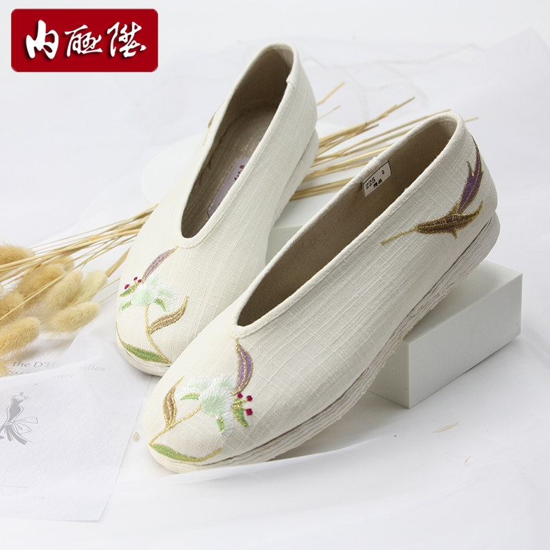 内联升女鞋新品蟾宫折桂绣花手工千层底布鞋女小元汉服单鞋8689A