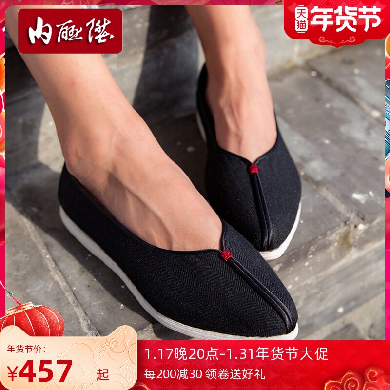 内联升女鞋手工千层底老北京布鞋女千牛仔海元边汉服鞋尖头8212A